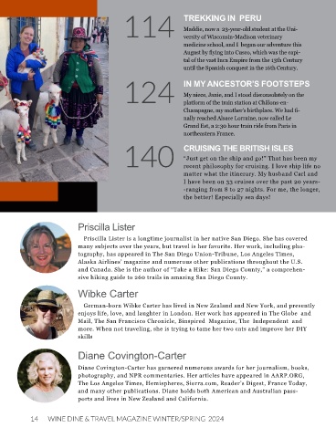 14 WINE DINE & TRAVEL MAGAZINE WINTER/SPRING 2024