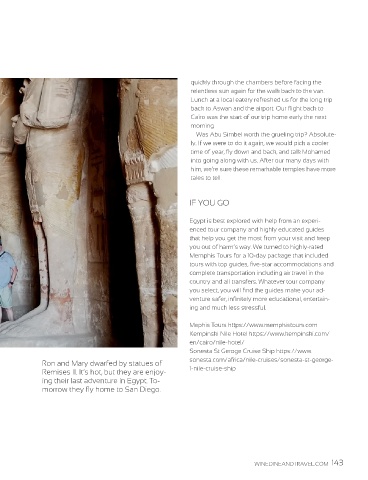 Ron and Mary dwarfed by statues of 1-nile-cruise-ship