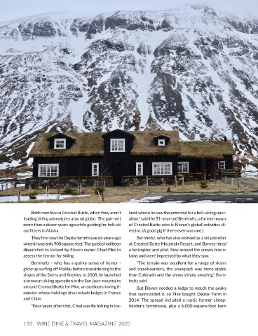 Both men live in Crested Butte, when they aren’t land,wherehesawthepotentialforaheli-skiingoper-