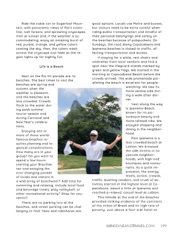 Ride the cable car to Sugarloaf Moun‐ good options. Locals use Metro and busses,