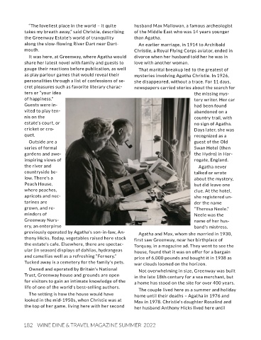 182 WINE DINE & TRAVEL MAGAZINE SUMMER 2022