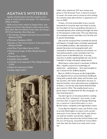 AGATHA'S MYSTERIES given to The National Trust. A massive project