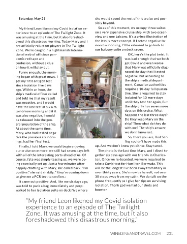Saturday, May 21 she would spend the rest of this cruise and pos-