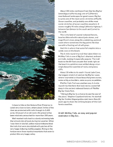 acres. Once part of an old ranch, this preserve has At left: McWay Falls, an easy and popular