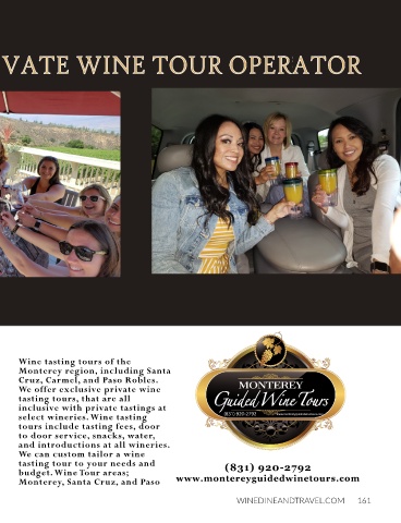 select wineries. Wine tasting (831) 920-2792 www.montereyguidedwinetours.com