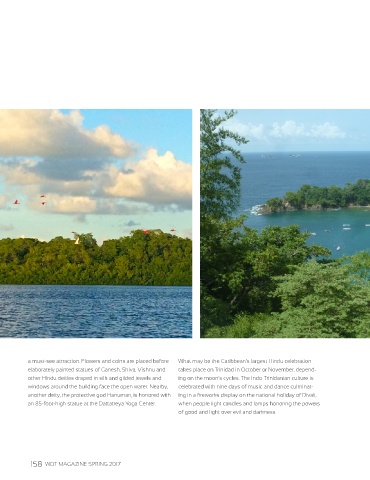 elaborately painted statues of Ganesh, Shiva, Vishnu and takes place on Trinidad in October or November, depend-