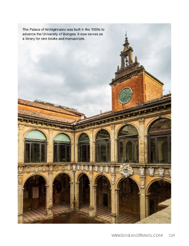 The Palace of Archiginnasio was built in the 1500s to advance the University of Bologna. It now serves as a library for rare books and manuscripts. WINEDINEANDTRAVEL.COM 139