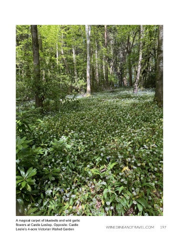 A magical carpet of bluebells and wild garlic flowers at Castle Lesliep. Opposite: Castle WINEDINEANDTRAVEL.COM 197 Leslie’s 4-acre Victorian Walled Garden