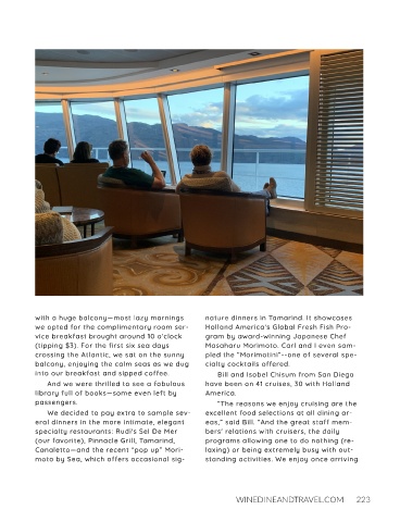 (tipping $3). For the first six sea days Masaharu Morimoto. Carl and I even sam-