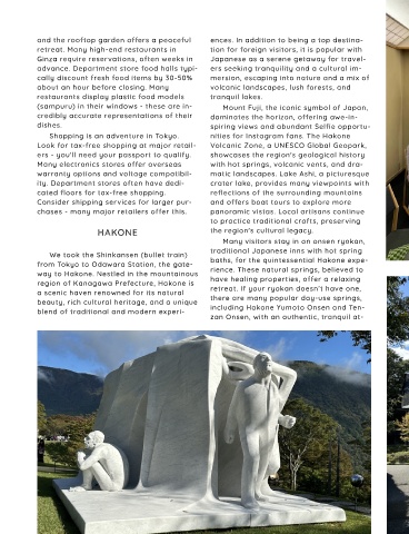 blend of traditional and modern experi- including Hakone Yumoto Onsen and Ten-