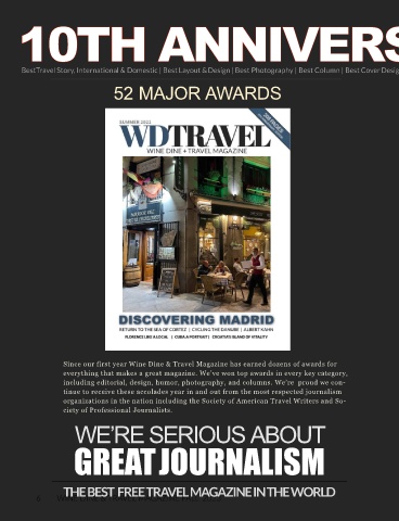 Since our first year Wine Dine & Travel Magazine has earned dozens of awards for