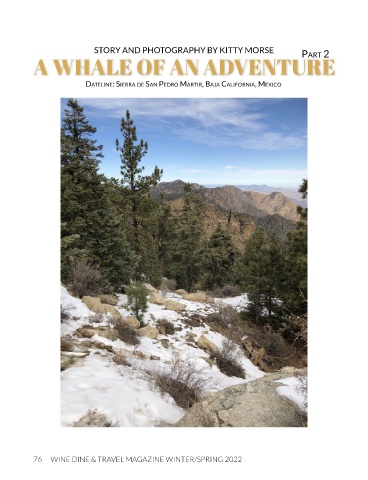 STORY AND PHOTOGRAPHY BY KITTY MORSE PART 2 A WHALE OF AN ADVENTURE DATELINE: SIERRA DE SAN PEDRO MARTIR, BAJA CALIFORNIA, MEXICO 76 WINE DINE & TRAVEL MAGAZINE WINTER/SPRING 2022