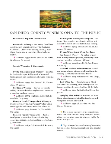 dido, CA 92025 Noir and Chardonnay, this tasting room fea-