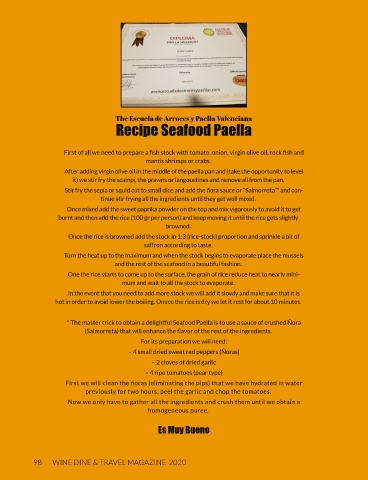 * The master trick to obtain a delightful Seafood Paella is to use a sauce of crushed Ñora