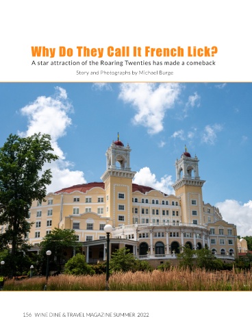 Why Do They Call It French Lick? A star attraction of the Roaring Twenties has made a comeback Story and Photographs by Michael Burge 156 WINE DINE & TRAVEL MAGAZINE SUMMER 2022
