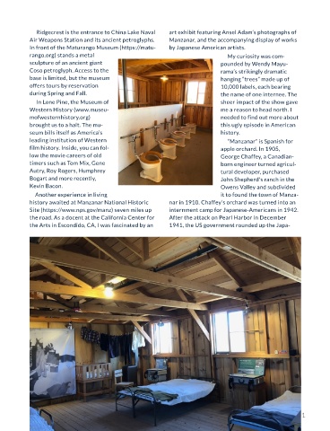 Air Weapons Station and its ancient petroglyphs. Manzanar, and the accompanying display of works