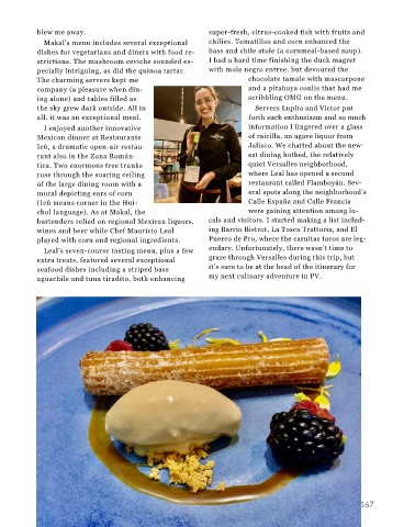 dishes for vegetarians and diners with food re- bass and chile atole (a cornmeal-based soup).