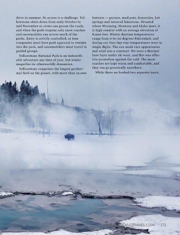drive in summer. So access is a challenge. Yel- features — geysers, mud pots, fumaroles, hot