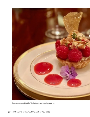 Dessert, prepared by Chef Stella Grove, at Knowlton Court. . 234 WINE DINE & TRAVEL MAGAZINE FALL 2023